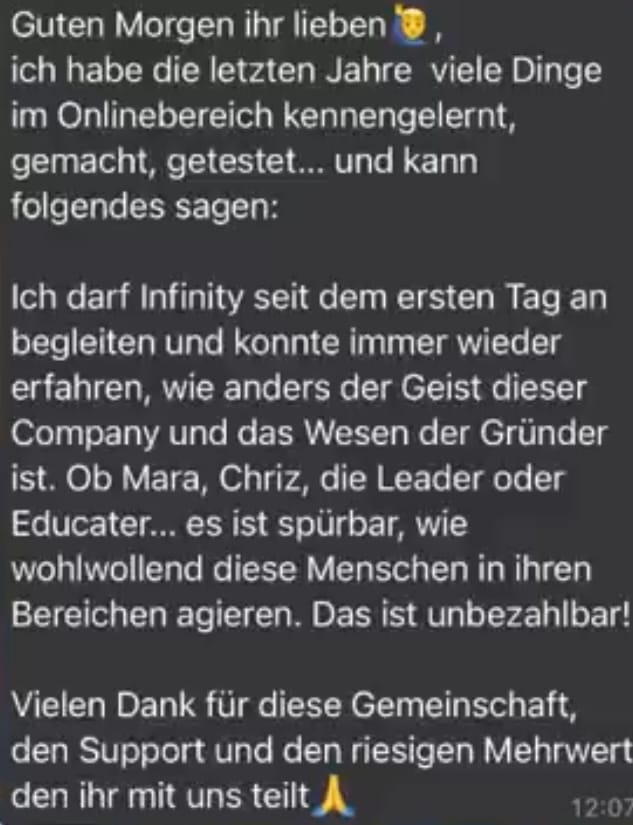 Hast du dich jemals gefragt, warum du in der Schule nicht die wichtigsten Dinge für das echte Leben gelernt hast? Mit Infinity erhältst du endlich die Möglichkeit, all das Wissen zu erwerben, das dir dort gefehlt hat – von Finanzen über Gesundheit bis hin zur persönlichen Weiterentwicklung. Diese Plattform bietet dir Schritt-für-Schritt-Anleitungen, um nicht nur deine finanzielle Situation zu verbessern, sondern auch deine Gesundheit und dein Mindset auf das nächste Level zu bringen. Warum solltest du jetzt starten? Weil das Wissen von Infinity dich dabei unterstützen wird, dein Leben zu verbessern – sowohl finanziell als auch persönlich. Ob du in die Welt der Finanzen eintauchen oder dein Mindset und deine Gesundheit stärken möchtest, hier findest du alles, was du brauchst. Bist du neugierig geworden? Lass uns unverbindlich in einem kostenlosen Gespräch herausfinden, wie Infinity dir helfen kann, deine Ziele zu erreichen. Egal ob es um Finanzen, Social Media, Gesundheit oder dein persönliches Wachstum geht – ich beantworte all deine Fragen und zeige dir, wie du von der Plattform profitieren kannst.