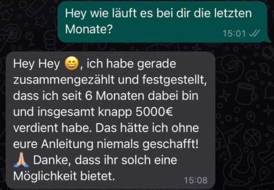 Was wir bei Infinity anbieten, kann jeder lernen. Es ist keine Möglichkeit, in ein paar Tagen Millionär zu werden, während man auf dem Sofa chillt. Du kannst zwar vom Sofa aus arbeiten, aber um reich zu werden, musst DU hart lernen und arbeiten.